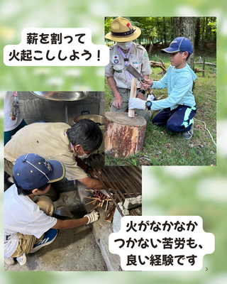 野外炊事は前回の舎営よりもスカウトの成長が見られ、火起こしや調理など協力しながら頑張っていました。